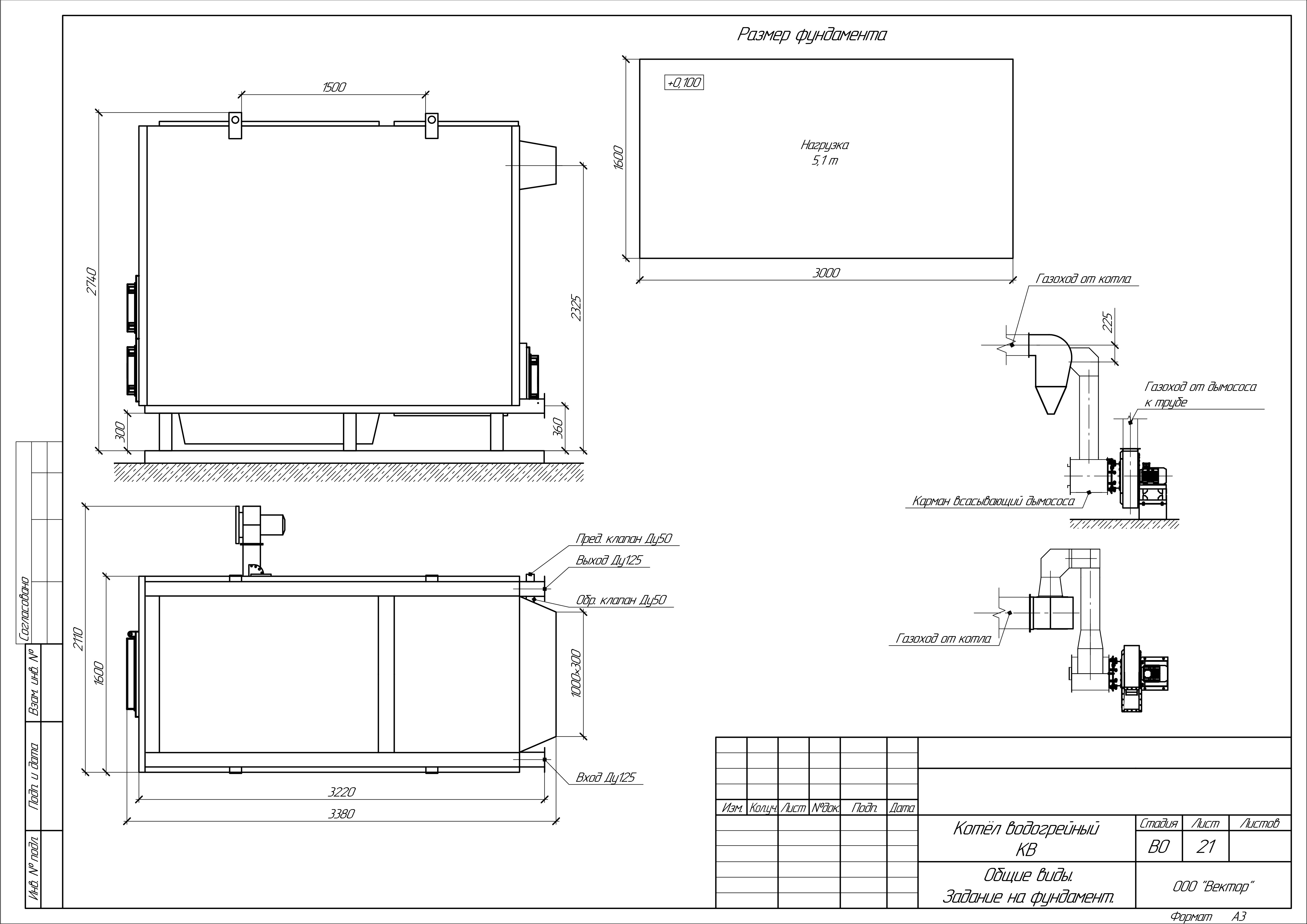 Водогрейный котел КВм-1.86 на древесных отходах со шнековой подачей, где: