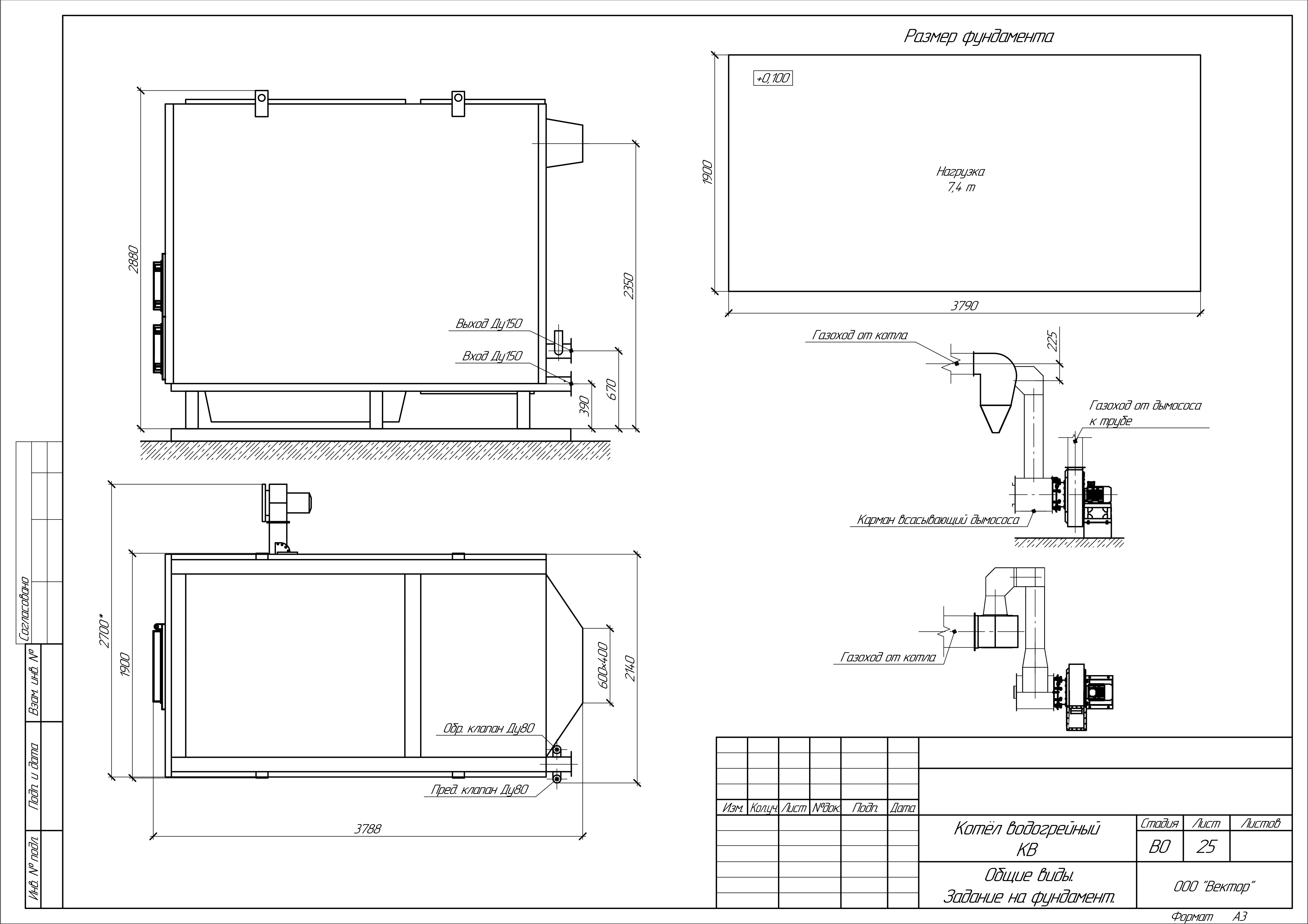 Водогрейный котел КВм-6.3 на древесных отходах со шнековой подачей, где: