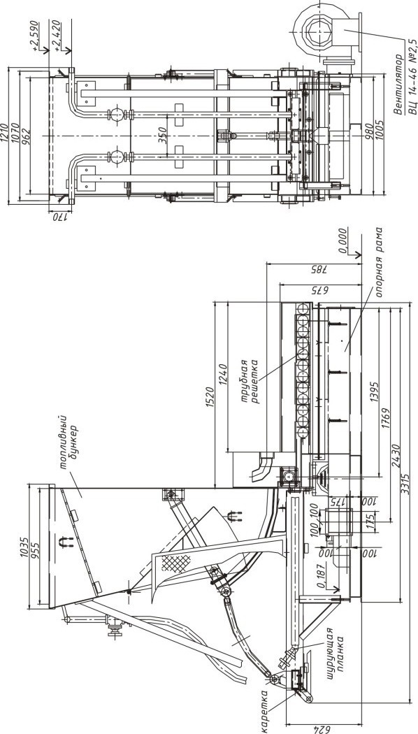 Отличительная особенность топки ТШПМ-1.45 — шурующая планка. Ее основная задача — распределять топливо по решетке образуя равномерный слой для полноценного сжигания. Также, при помощи планки происходит сброс прогоревшего топлива в виде шлака и золы в камеру отходов, расположенную под колосниковой решеткой.